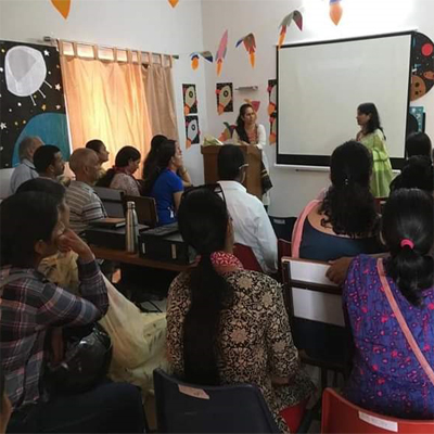 The class teacher, and co-class teacher through designed activities and individualized educational plan develop gross motor, fine motor, language, social behavior, academic skills and encourage, sensorial development. Our special academic program includes english, maths, hindi (optional), coloring and pasting.